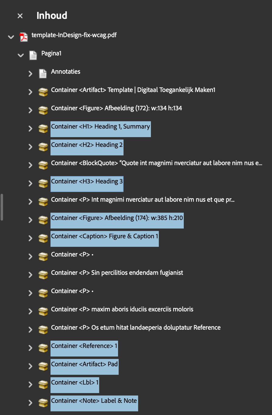 | Alles wat er qua toegankelijkheid mogelijk is vanuit opmaak-software heb je nu gedaan. De rest doen we, en kan alleen, in Acrobat Pro... |